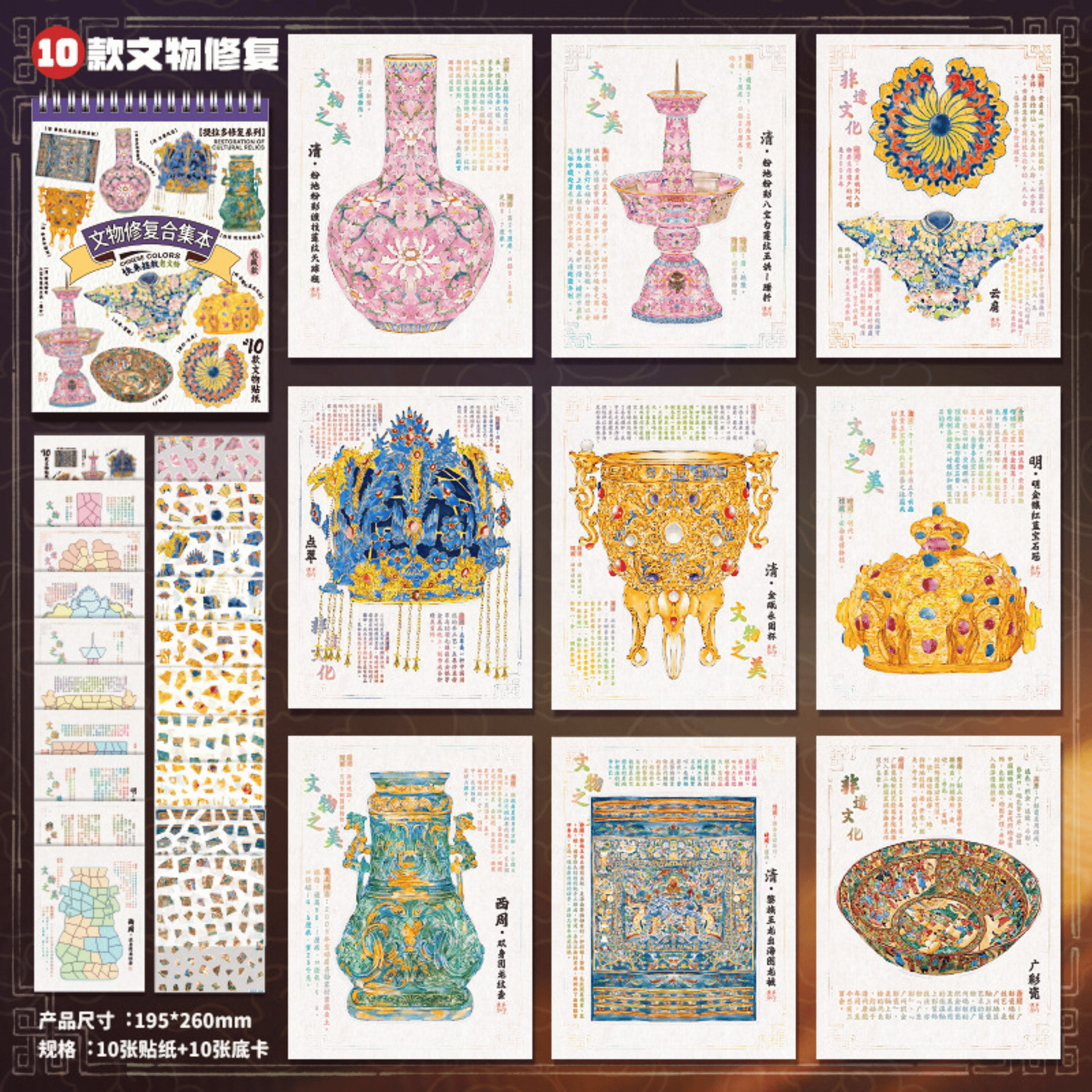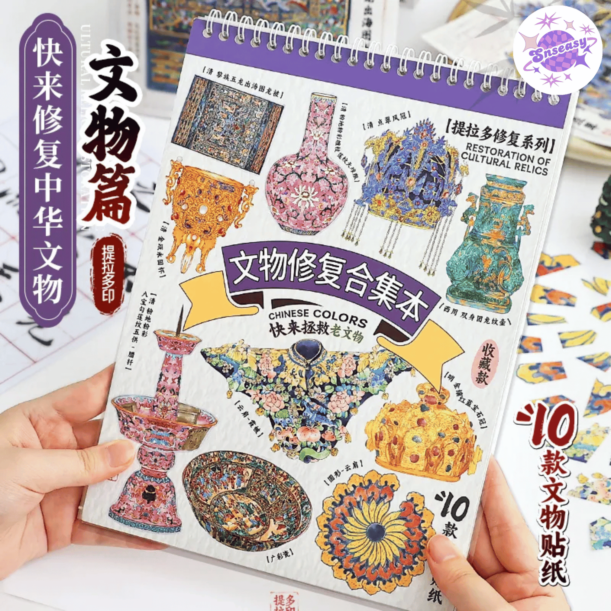 Embark on a journey through time with the Chinese Cultural Relic Restoration Sticker Puzzle Book! Featuring 10 intricately crafted scenes, this collection lets you piece together the wonders of ancient China—one sticker at a time. Each scene recreates the fascinating world of traditional artifact restoration, where history comes alive through delicate brushwork, aged scrolls, porcelain shards, and time-honored craftsmanship.