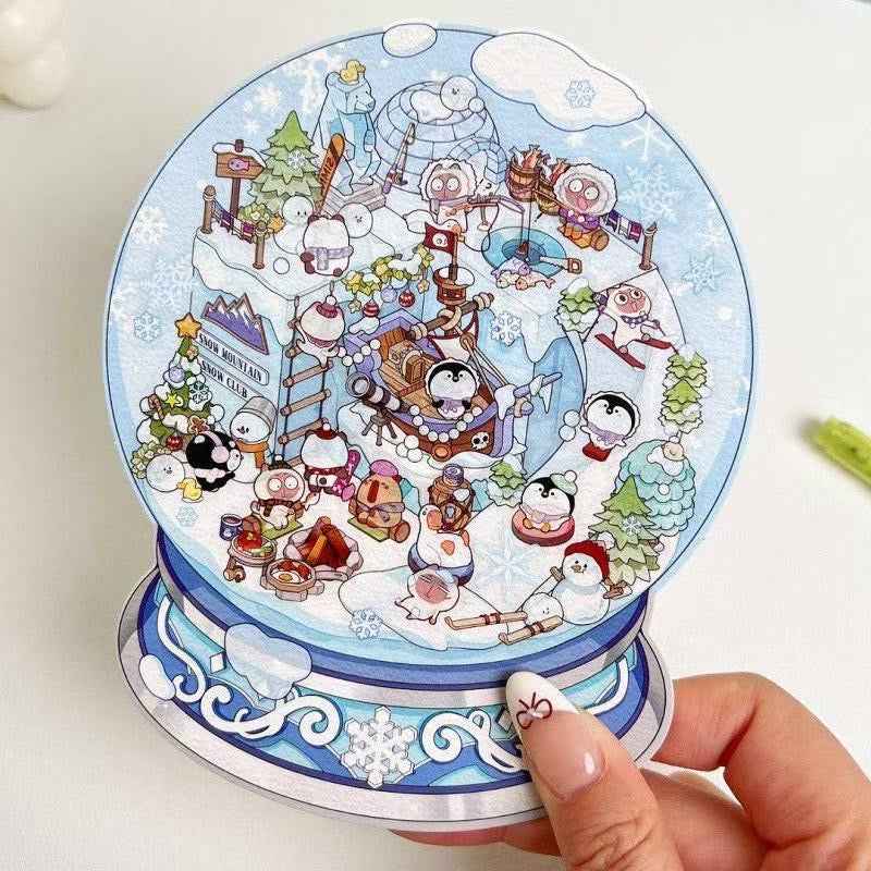 Cute Animal Gifts – 3D Sticker Scenes - 4 Theme Sets: Panda Flower Gift Box | Penguin Ice Cream Kitchen | Crystal Ball Amusement Park | Monet Painting Box
